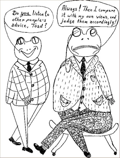 Max's imagination had a whimsical twist to it, as seen in this cartoon of his alter ego, Mr. Toad. Perhaps Max gave Mr. Toad a voice for the fun of it, perhaps as a way to cope with classism, superiority...or even St. Bartholomew's reluctance to investigate the mind-body connection. See three more Mr. Toad cartoons.